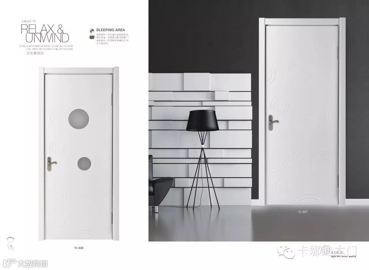 由于木门属于居室的立面功能性饰品,所以,木门同家居中的家具、墙面漆、窗套、地板的关联比较大,最好木门的颜色和地板颜色属于同一个色系,但是不要属于完全一模一样的颜色,防止地面同墙面混浊不清,减弱居室空间感。木门应该同家具的颜色比较接近,同墙面色彩要有对应性反差。比如白色的木门最好让墙面漆带有色彩,这样不至于房间显得太过平面化,使房间缺乏立体效果。