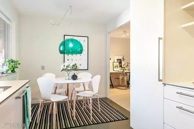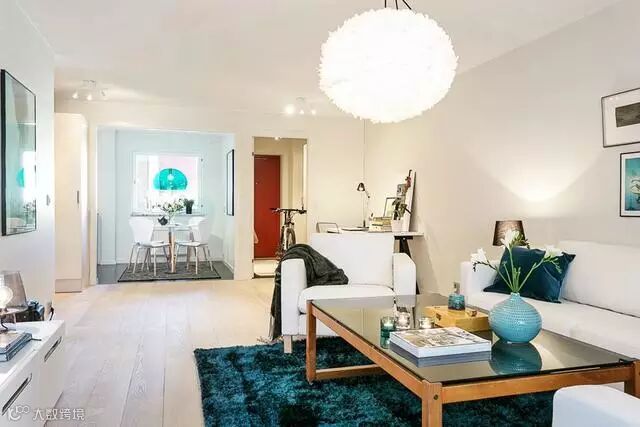 这组风格主要是以白色的北欧风格为基础,再搭配上很多孔雀蓝的装饰,在素雅的家装世界中把妖媚和神秘的孔雀蓝色发挥得淋漓尽致。