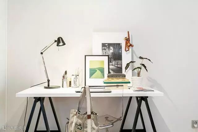 书桌的摆放,配合了少许北欧管用的金属工业元素,突显干练与简约。