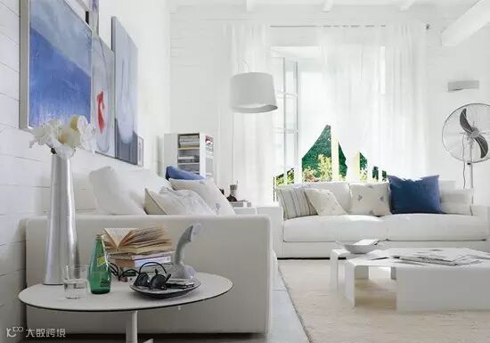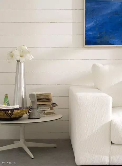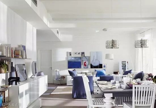 给沙发换上蓝色外套,为多层次的白色空间注入海洋般的宁静,是让房间向清凉感更进一步的必要手法。