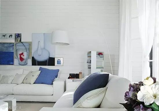 蓝白色调起居室,清新怡人。起居室几乎全部以白色打底,充盈着纯粹的清凉感。白色空间里用蓝色点缀,是提升空间清凉感的极好方法。