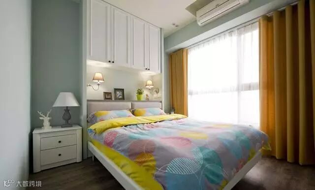 卧室及更衣室都以浅蓝中带点灰色为主调,营造沉稳的氛围。有着满满两面墙柜的更衣室也可当作书房,甚至客房使用。