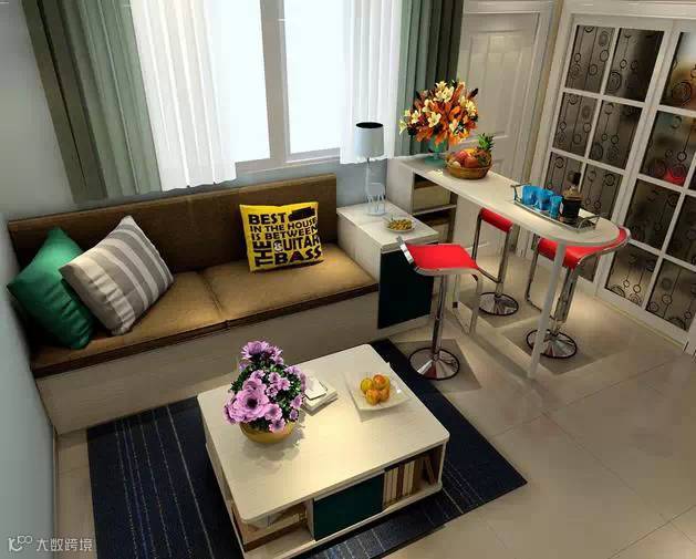 设计师支招:在沙发旁边的位置设计个简约吧台,不仅拥有了一个时尚的休闲区,而且自然成为了客厅与厨房的隔断。