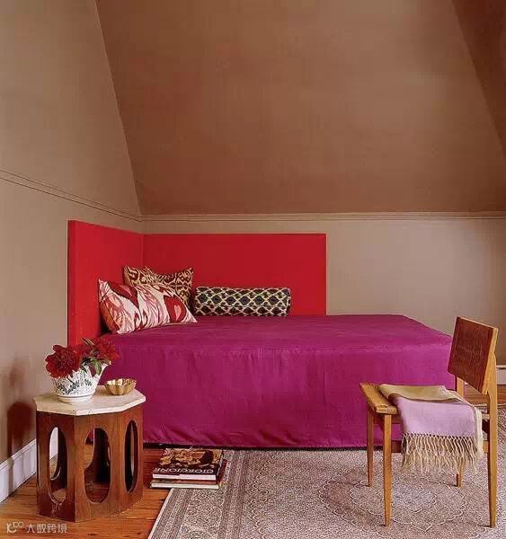 选用和床单相配的颜色来涂刷床头板,卧室周遭的空间瞬间被放大了有木有?!