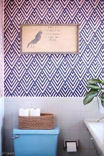 刷一些波点等纹路、图案为墙面装饰,“伪装”成贴了墙纸的效果,既美观又能避免墙纸变旧、泛黄等头疼问题。