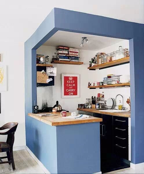 选一个合适的角落,例如开放式的厨房、吧台等,用活泼艳丽的色块大面积“框起”这个角落,怎么样?是不是立刻洋气了许多?