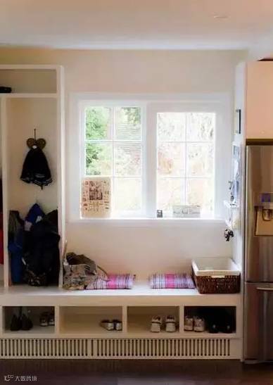 ▲矗立于此的花架子,兼具书柜、鞋柜、花架子多重作用,妙哉!