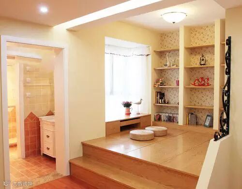榻榻米起源于中国,但小编最先接触到的榻榻米却是日式极简的和风榻榻米。国人最为尊崇的是洁净舒适的休闲娱乐式榻榻米,也通常与飘窗结合。进可为待客场所或阅读区域,退可当做窗台。