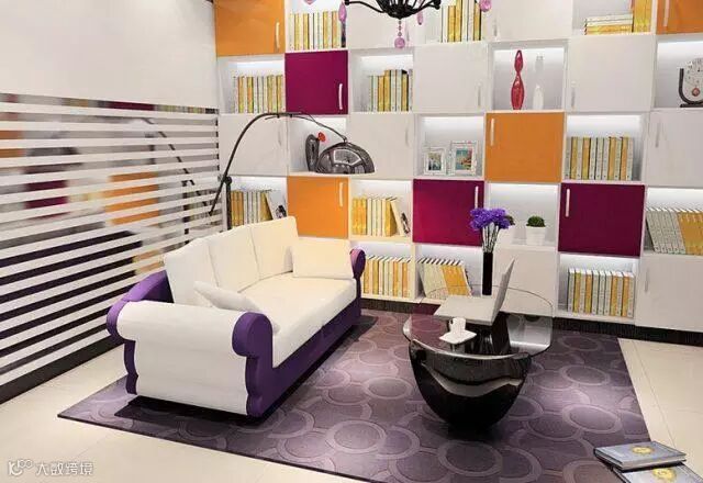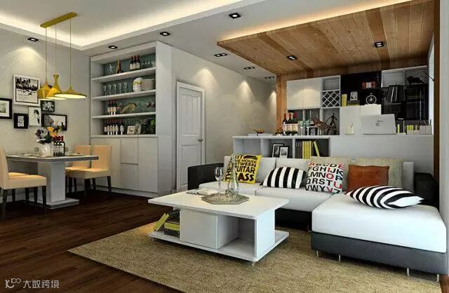 利用客厅中的一整面墙打造一个入墙书柜,被书包围的客厅很有氛围哟~
