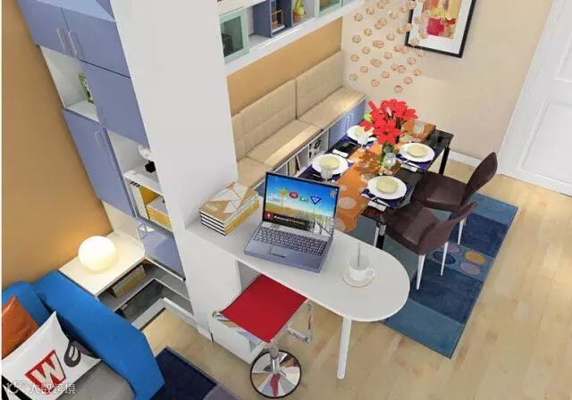 专为客厅面积不到10㎡的超小户型打造!客厅与书房融为一体的感觉十分温馨。