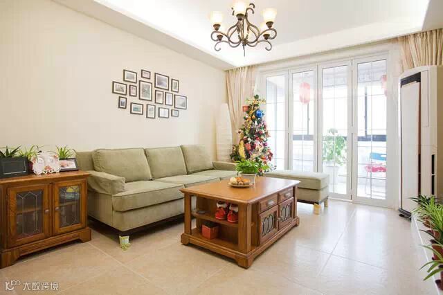绿色沙发配白色茶几,看久了也不错