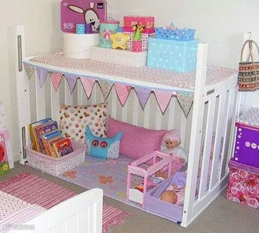 下面这个改造我最心水了,把小床翻转,就成了娃娃的休闲屋