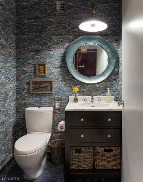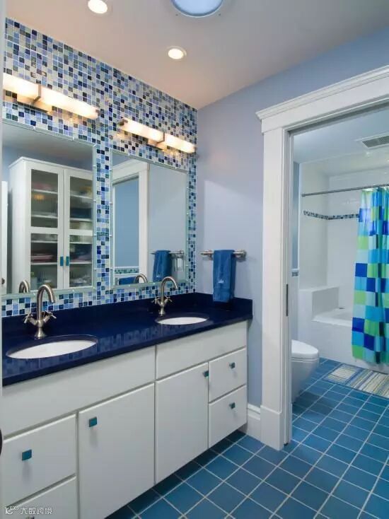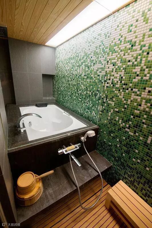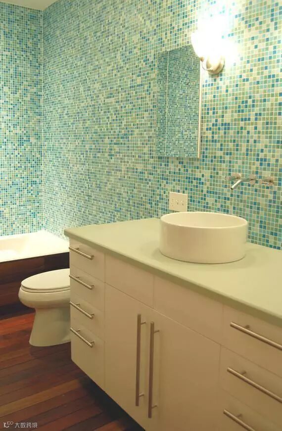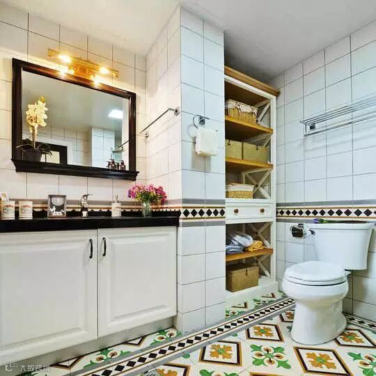 如果有喜欢白色墙砖的朋友那么可以用点其他颜色的砖块加以点缀,使原本潮湿阴暗的卫生间增加点朝气。特别是白色和绿色的搭配让卫生间看起来明亮很多同时还带着清新舒适感。