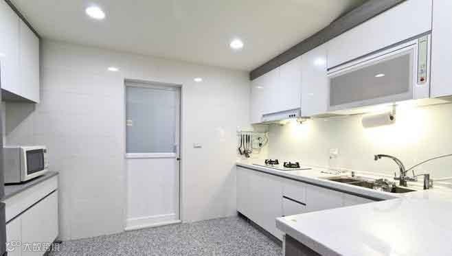 简约风格厨房门图片,1楼规划做开放式车库处理,后方另作储藏空间,将原有的孝亲房移至2楼,结合客餐厅及厨房作一完整生活机能配置,让未来父母同住时无须上下奔波。