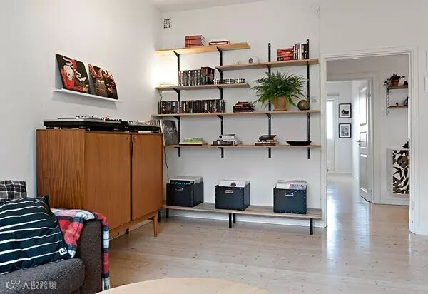 对小空间深有研究的美国设计家勒维斯就指出“所有家具都尽量无把手和腿脚,防止裸露过多”。采用封闭式和开放式并行的收纳方式才是适合小空间的,且要对作为公共区域的客厅中的开放式收纳物品进行严格挑选。