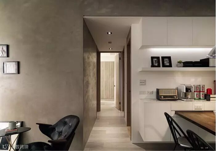 单纯而不简单的设计,搭配深具个人特色的软装布置,让家展现与众不同的风貌。不论卧房内刻意选择旧材、铁件结合,带有浓浓工业风的 三 层柜,或客厅区随兴搭配的黑白摄影作品及带有工业感的复古立灯与温暖烛台,在在突显居住者的个人品味。