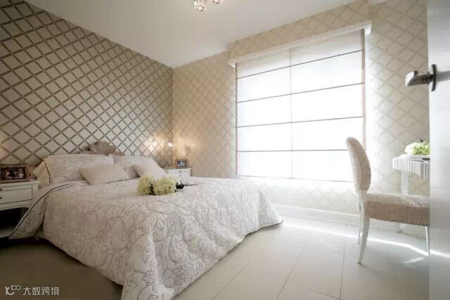卧室也是很讲究品位的地方,白色木质背景墙挂上墙画,别具一番风味。