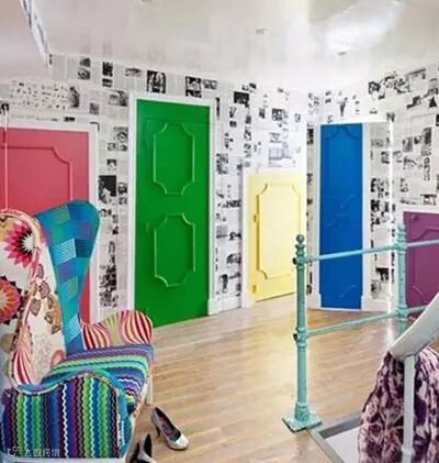 鲜艳彩色的木门,绚丽夺目,花样多彩。像是在家中种上了繁花,宛如卡通世界的俏皮。