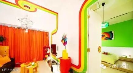 绘画出缤纷色彩打造不一般的卧室旋转门,充满创意的卧室旋转门,像是将创意的元素变成真的,打造出缤纷炫彩世界。