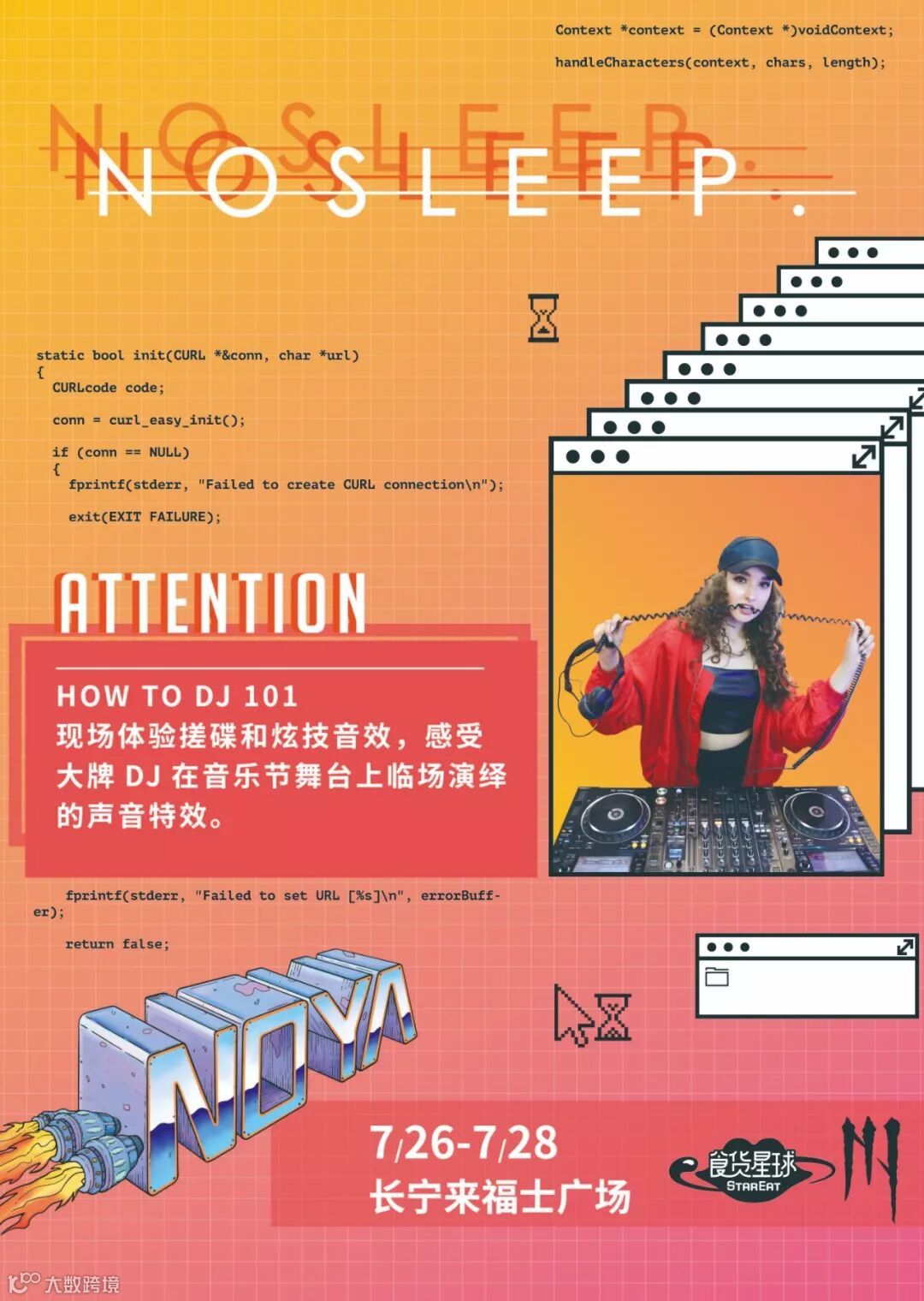 NOYA旗下音乐厂牌NOSLEEP不仅将带来燃爆夏日周末的音乐现场,更将举办一系列音乐Workshop,带大家零距离体验时代最前沿的音乐形式,释放即兴创作的乐趣!