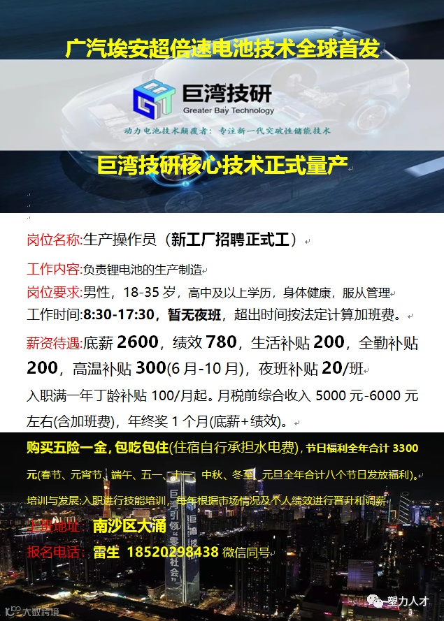 巨湾技研周五面试丨南沙新进驻科技公司丨聘正式员工丨享有年终奖