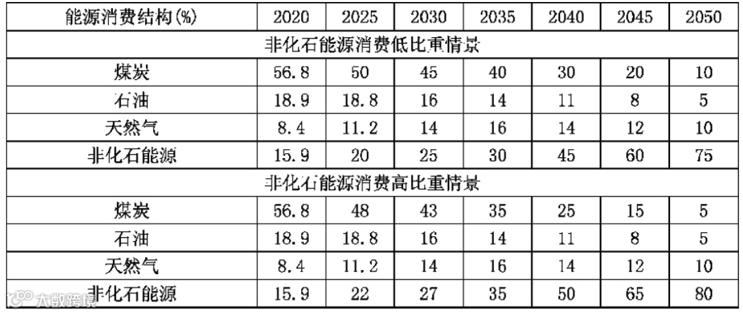 表1 能源消费结构情景设定