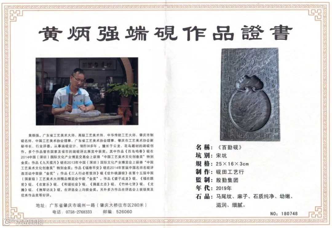 端砚是中国四大名砚之首;肇庆是唯一国家命名的中国“砚都”。经过多年来的部署、策划,近日,殷勤集团与省工艺大师黄炳强合作开发的以肇庆端石为原料打造的端砚、茶托、茶盘等端石产品终于面世!由集团策划、监制与大师首期开发了五款端石作品,分别为《旭日东升》(端砚)、《百勤砚》(端砚)、《天道酬勤顶》(茶托)、《殷勤盛》(干泡茶盘)、《秋韵》(茶盘)。名石名砚,大师天工。每件作品历经了从相石、开料、线介、设计、出坯、勾勒、粗雕、细雕、抛光、打磨及上蜡等工序,倾注了殷勤人与大师的心血。从天然的端石制造成一件件具有艺术美学与殷勤文化、茶道文化紧密结合起来的工艺作品,是送礼、收藏的必选之器。每件作品同时还配有大师的收藏证书。