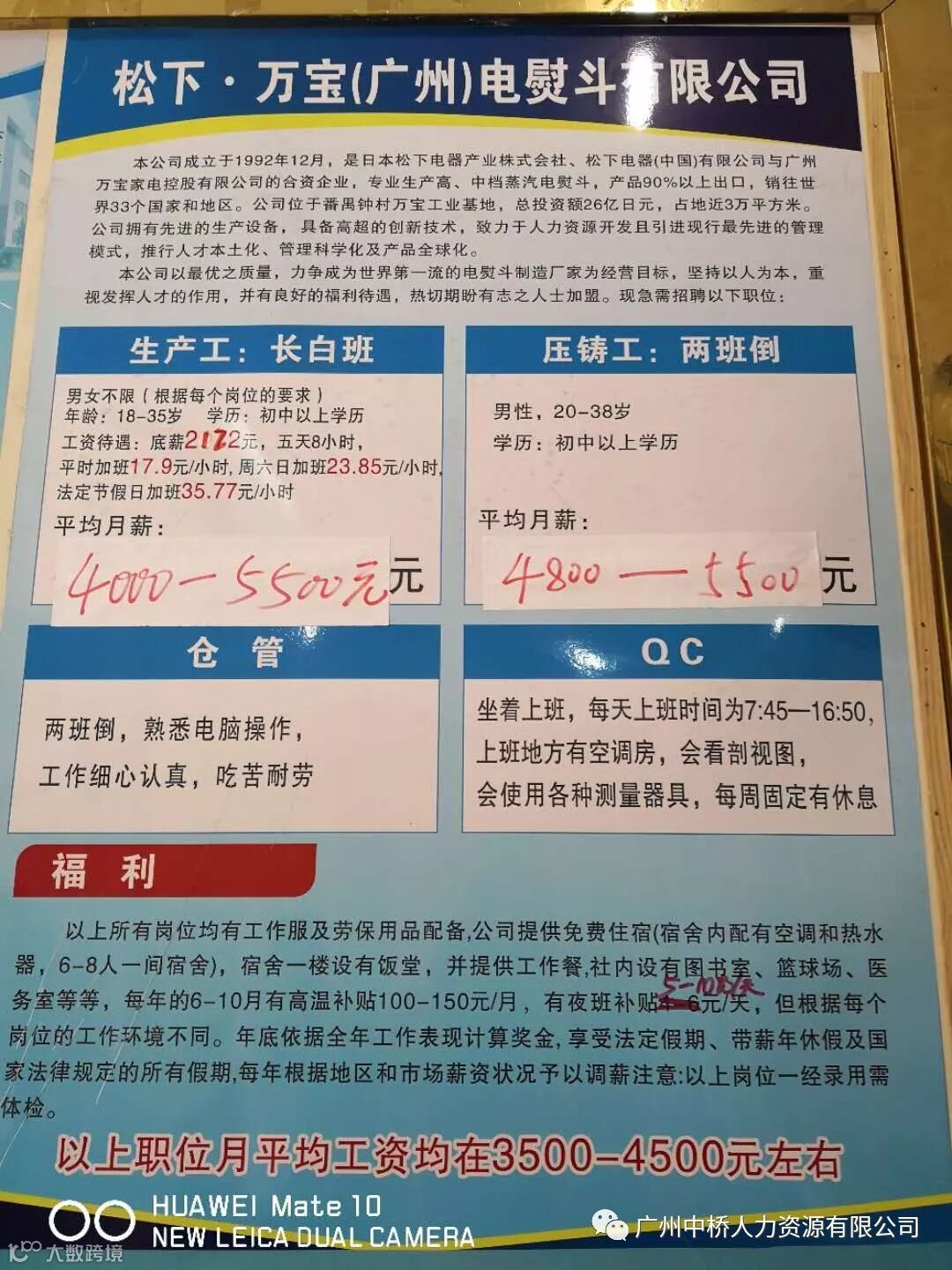 番禺最高底薪2200松下美建生活电器公司