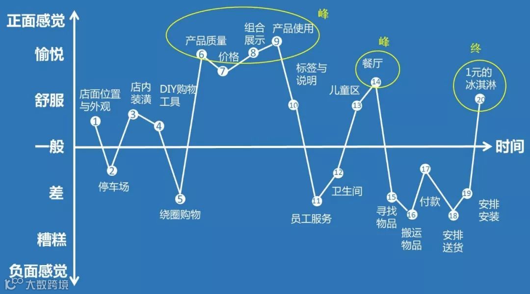 所以,1元钱的甜筒看似赔本,却为宜家带来了极佳的“终”体验,成为人们记住宜家的一个标记。当人们再回忆起宜家的购物之旅时,会觉得整体行程都非常棒。