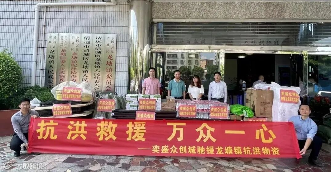 滔滔洪水,见证人间大爱;灾难面前,彰显企业担当。在抗洪关键时刻,兴奇集团旗下奕盛众创城闻“汛”而动,冲锋在前,与龙塘镇抗洪救灾指挥部携手抗灾,积极支援抗洪救灾工作。6月24日,奕盛众创城向龙塘镇政府捐赠一批抗洪救灾物资,包括矿泉水、折叠桌、帐篷、应急灯、扩音器等,以实际行动践行企业责任与担当。