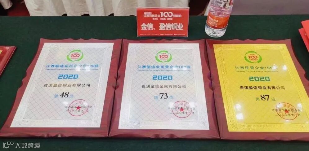 热烈庆祝贵溪金信金属、贵溪盈信铜业荣获“2020年度江西省百强企业”称号