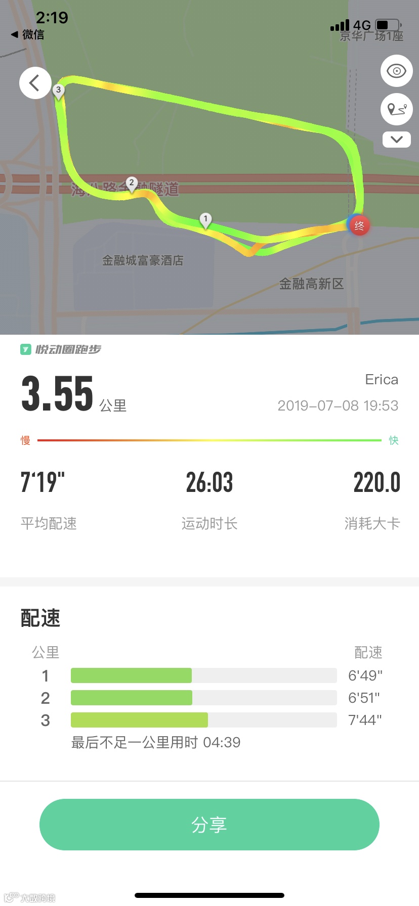 三、提供能显示打卡地点、时间、公里数的截图为计量凭证,每周六活动后将截图发布在微信群。如下图所示: