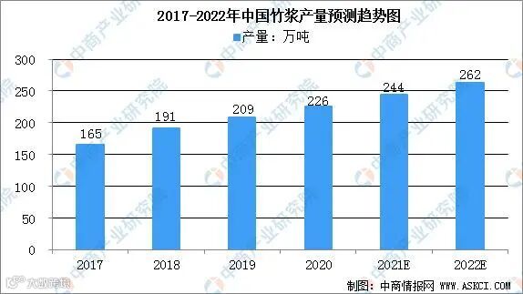 我国竹浆生产主要分布于四川、广西、贵州、重庆等地区,四省竹浆产量占全国的80%以上。我国竹浆生产工艺技术日趋成熟,竹浆产量呈增长态势,数据显示,2019年国内竹浆产量209万吨。中商产业研究院预测,2021年我国竹浆产量可达244万吨,2022年达262万吨。