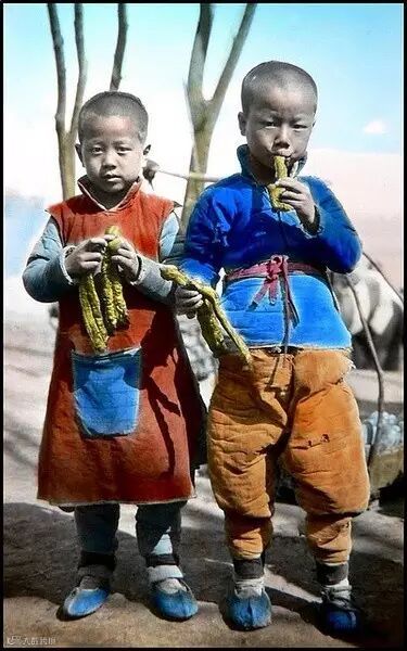 ▲吃油条的少年,拍摄于1900年左右