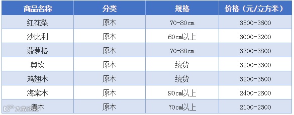 有经销商家指出,海棠木等材种价格的上涨,除了受到下游需求回暖的推动之外,上游供货紧缺导致国内市场库存量严重紧缺是其价格回升的另一重要因素。其他材种如菠萝格、沙比利、奥坎等则因库存充足而导致其价格难以有效上涨,整体维持在平稳的态势。