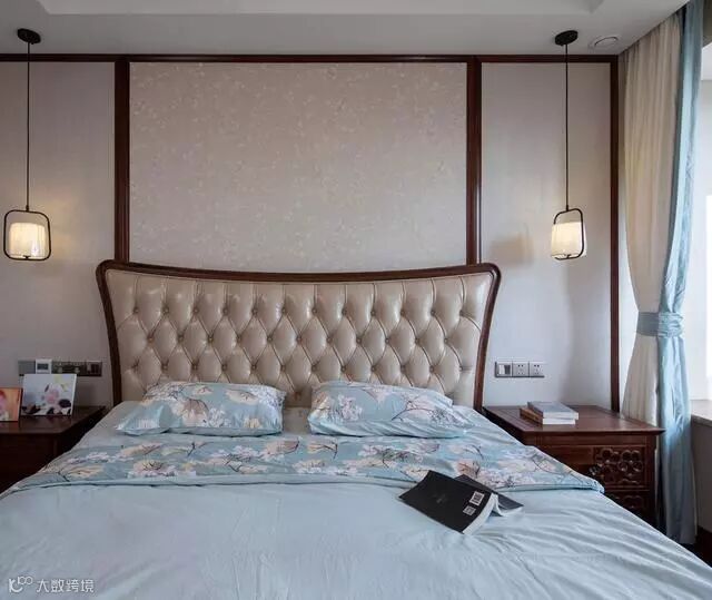 次卧的装修相对简洁的多,但床头两侧的下垂式吊灯很吸睛,造型别致又大方。