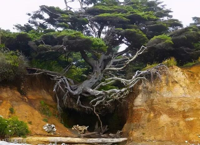 这个树的生命力是多么顽强,马上就要掉下去了还死死地抓住不放。