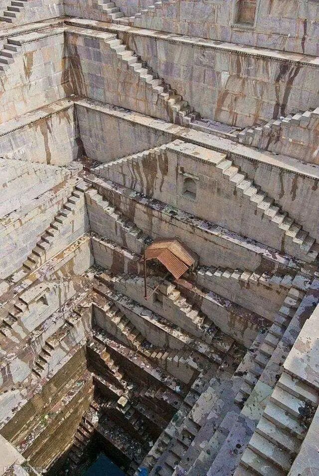 位于印度拉贾斯坦邦的阶梯井,打一桶水要上下几百台阶,体力不好还真活不了