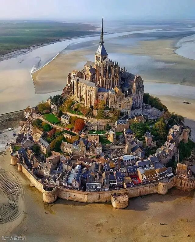 当涨潮时,法国的圣米歇尔山被大海覆盖。我真的不知道当时它是如何建造的。