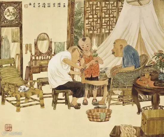 祖父年迈,儿子尽孝