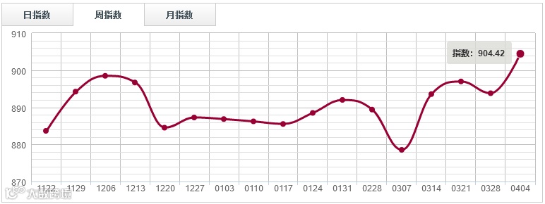 本周人造板分类指数重回红盘,报收904.42点,环比攀升1.19%。各大市场当中,鱼珠人造板指数、福人人造板指数、大西南人造板指数分别拉升0.16%、0.12%、6.43%;临沂人造板指数下跌0.49%。