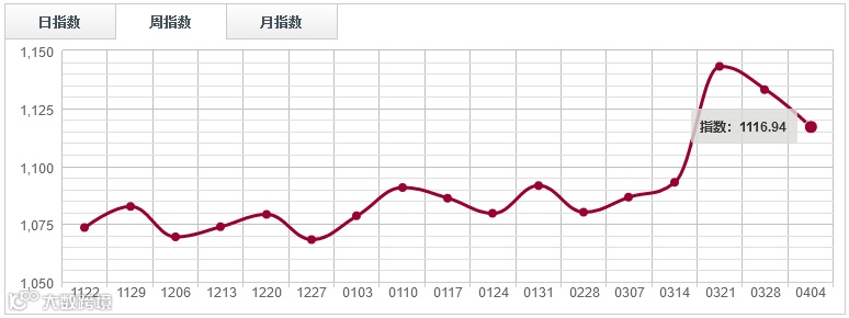 本周原木分类指数走出回落调整行情,周指数报1116.94点,周环比跌16.17点,跌幅1.43%。不过在成交量方面,市场还是可圈可点的,本周销量环比着呢家19.91%,交易额增加13.13%。