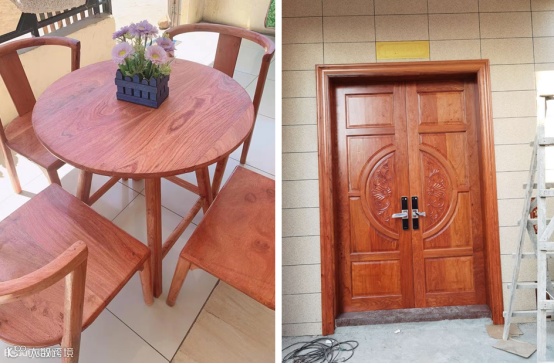 赞比亚花梨的加工特性:材料质量、硬度中等,结构细、均匀,加工不难,易干燥、不易开裂、翘曲,易刨削、握钉力良好,有光泽,心木耐久度高。打磨时候不需要像草花梨和亚花梨那般难,赞比亚花梨打磨基本不起毛边。配色容易,色差相对小,不像花梨木会有黄料/红料/黑料,不愁配色,也无需漂白。那么它的木质水平也相对接近,不会像其他花梨木那样不均匀。