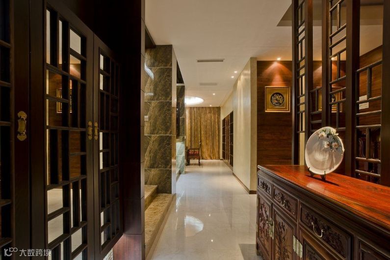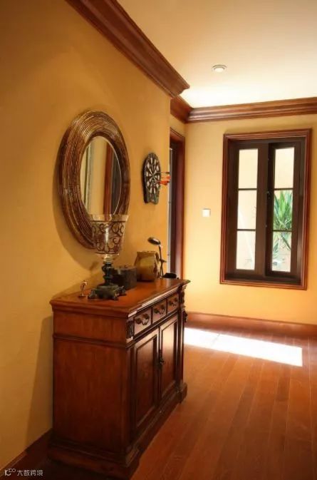 墙壁间隔之间应下实上虚,面对大门的玄关下半部应以良好的砖墙或木板来进行装修,作为模板,上半部装修可以明亮的装饰材料如磨砂玻璃。