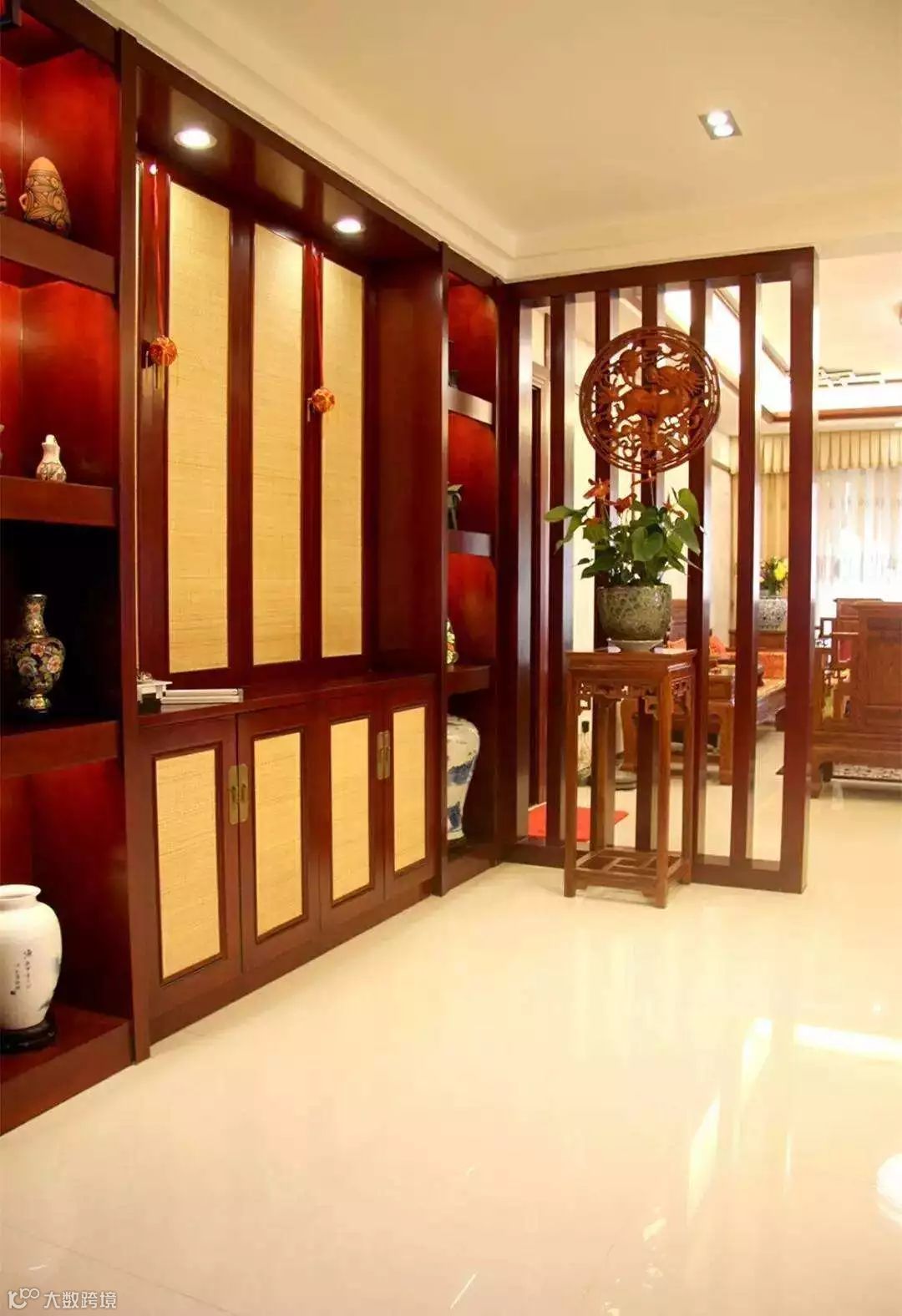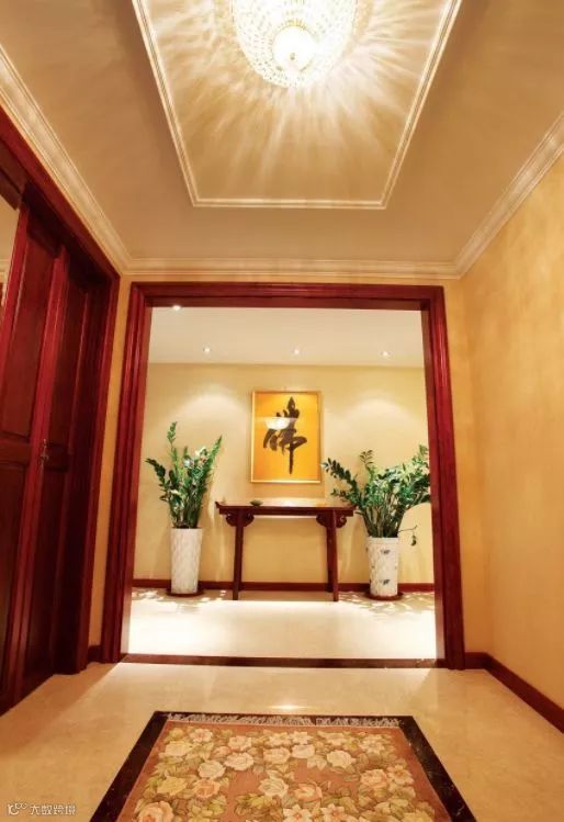堪舆学中还有开门“宜三见”的说法,即“开门见红 开门见绿 开门见画”,这些都可以在玄关处体现。