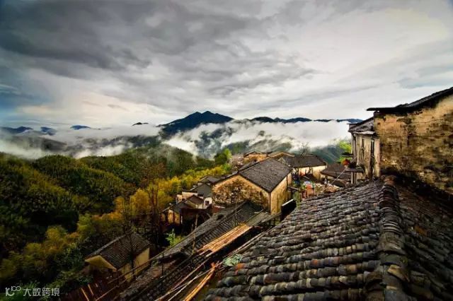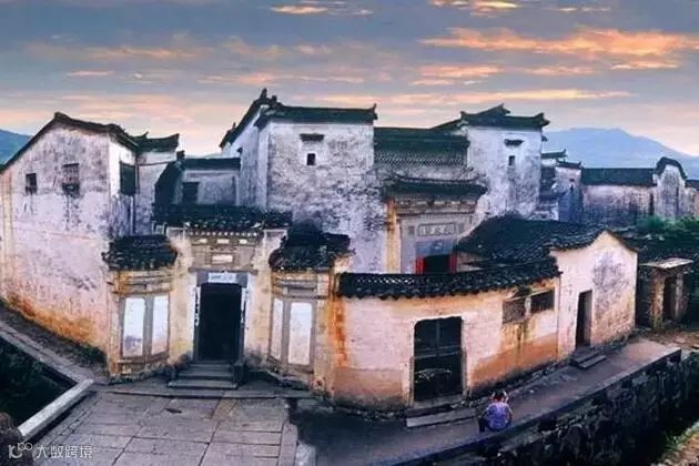 跌宕起伏的马头墙,山头斜阳映衬的炊烟