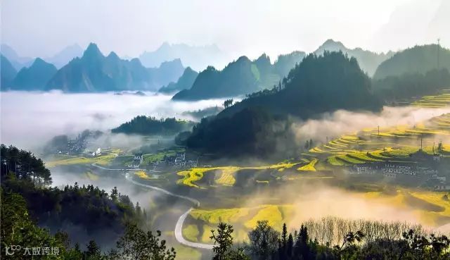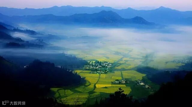 柯村坐落在山高林密的清溪河与东坑河交汇的深山盆地,处于三县交界处,东临美溪乡,南西连祁门,北接石台,距黟县县城51公里。每年三四月间去柯村,快到村子的盘山公路上,就能俯瞰到大片大片油菜田金浪翻滚,漫山遍野,蔚为壮观。如若想要拍到云雾缭绕的样子,便要早早起来或者雨后才能赶上好时机。