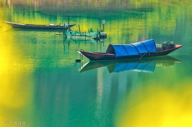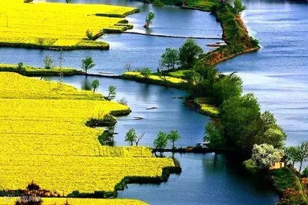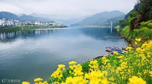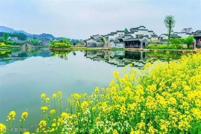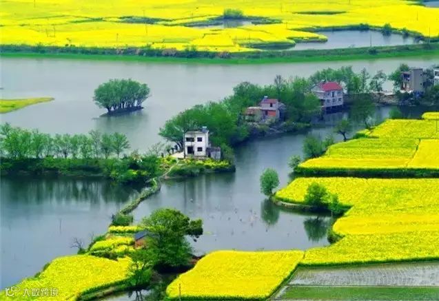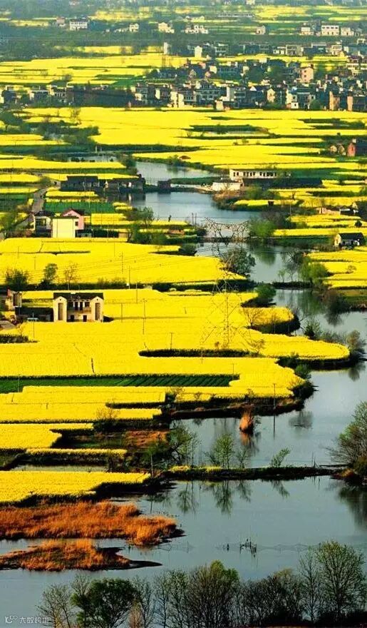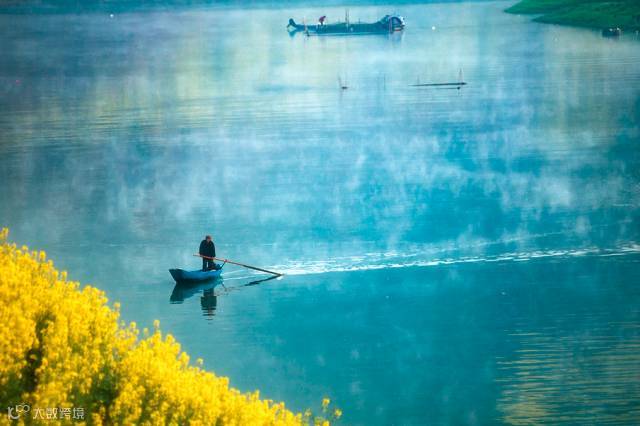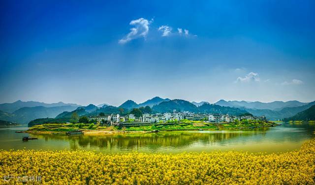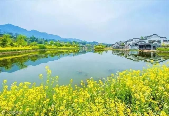 泛舟江上,迎着花香,看两岸徽派房屋隐隐绰绰,看油菜花田铺天盖地层层冉冉,看岸边湖中的倒影虚虚实实,俨然一幅幅曼妙多姿的田园山水画!