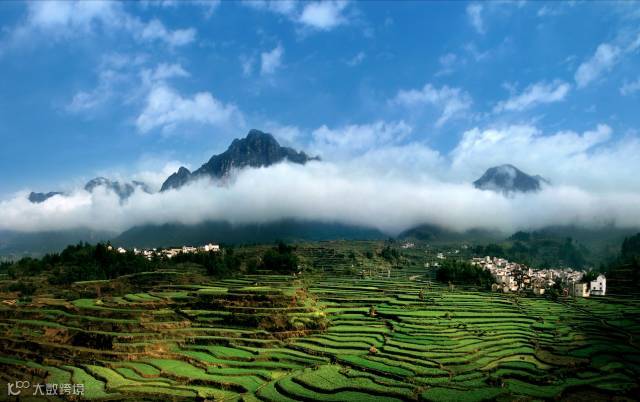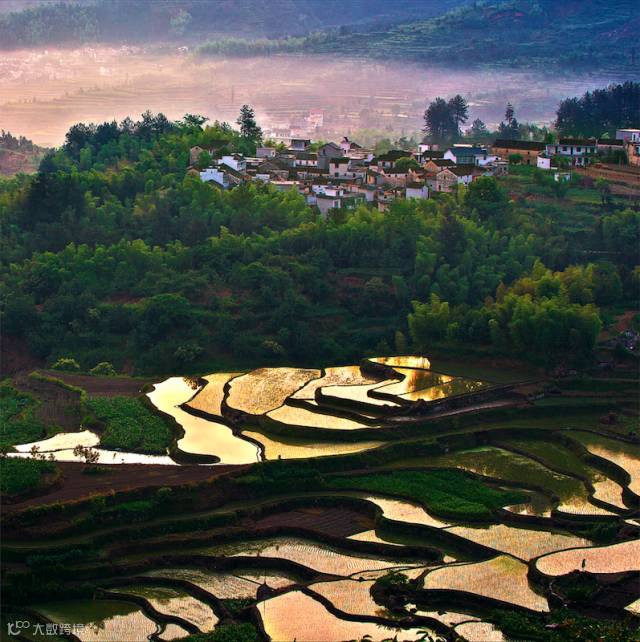 建于宋代的祖源村地处海拔685米的插角尖山腰上,住着不到300户人家,这里群山拱秀,生态绝佳,徽风浓郁,尤以花期为美,享有“梦里山村”之美誉。高空俯瞰古民居与梯田交相辉映,如诗如画!