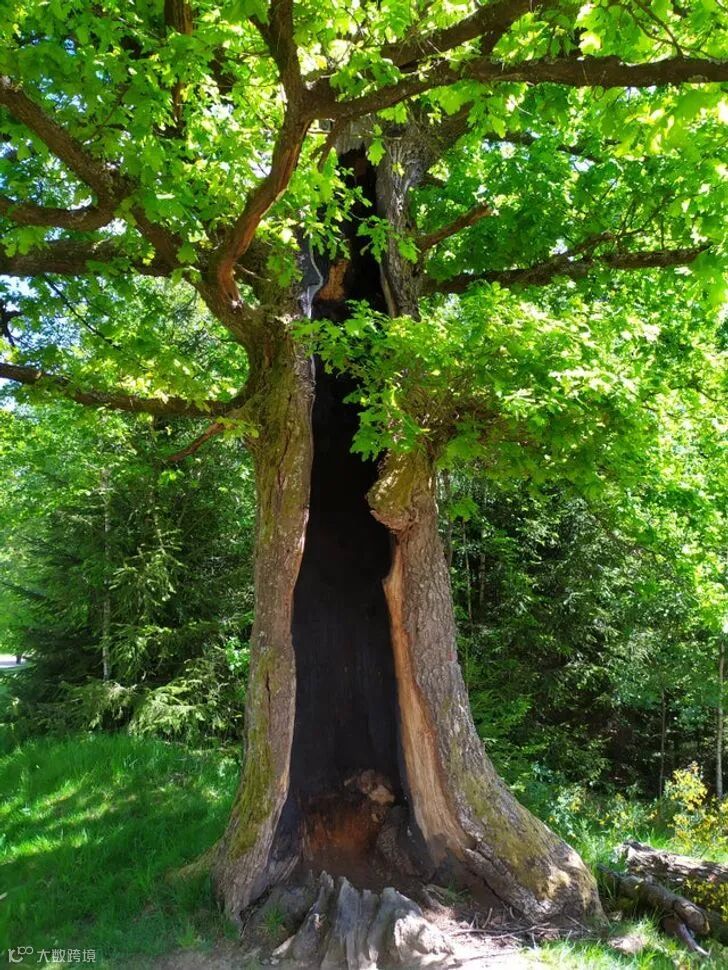 16.尽管被闪电击中并半烧,但每年仍旧是绿色的老橡树